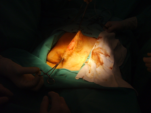 4.- Exploración de la piel y de su estado minuciosamente, si hace falta consulta a Cirujano Plástico, para ver posibilidades. Es muy importante conocer que podemos cerrar la piel a primera intención o que tenemos algún recurso para evitar la infección o el cierre a segunda intención ya que la prótesis podría quedar expuesta si es subcutánea e incluso infectarse aunque fuese submuscular.