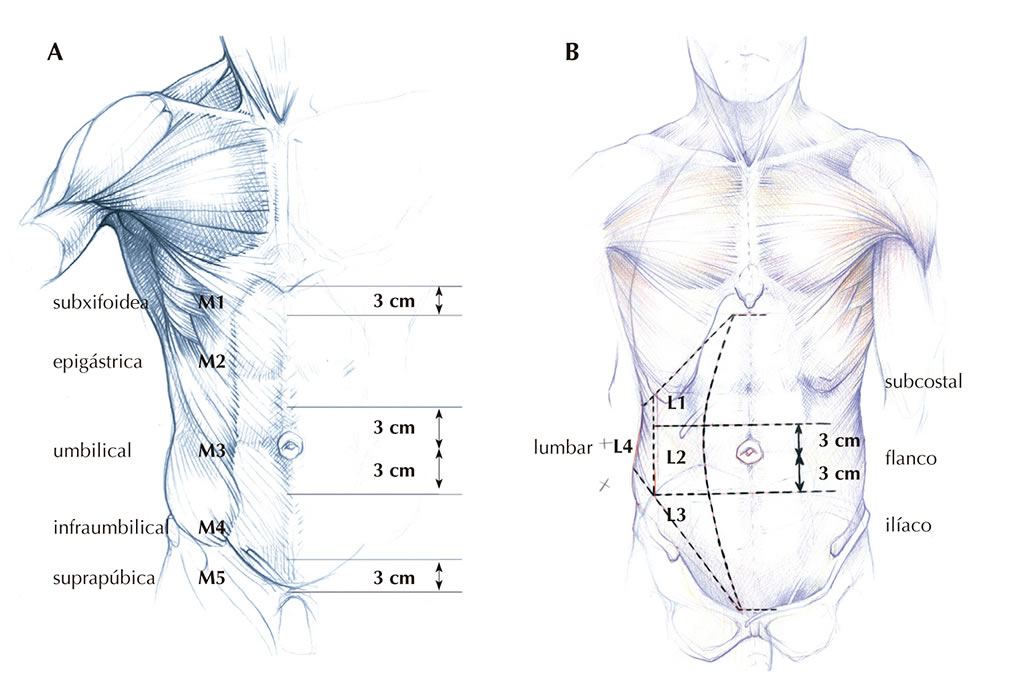 Dada la importancia de consensuar una clasificación universal para las eventraciones, nombrarlas por su localización es una buena opción, ya que el término puede ser entendido por todos los cirujanos generales. Además, mejoramos el concepto si añadimos las siglas que ha propuesto la Sociedad Europea de Hernia (EHS, European Hernia Society). Mostramos, abajo, un dibujo que recoge dicha clasificación.